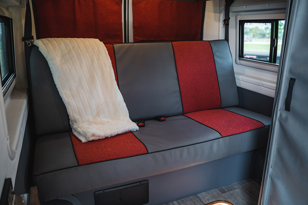 If you’re planning to do some overnight camping in the Roam, you’ll appreciate the powered sofa/bed located in the rear of the motorhome. It easily converts into a comfortable sleeping space for two people with the push of a button. If you choose the optional pop-top roof, you can even sleep an extra two people, giving you plenty of room for everyone to get a good night’s rest. Whether you’re exploring the great outdoors or just taking a break between activities, the Roam’s sleeping accommodations will help you relax and recharge.