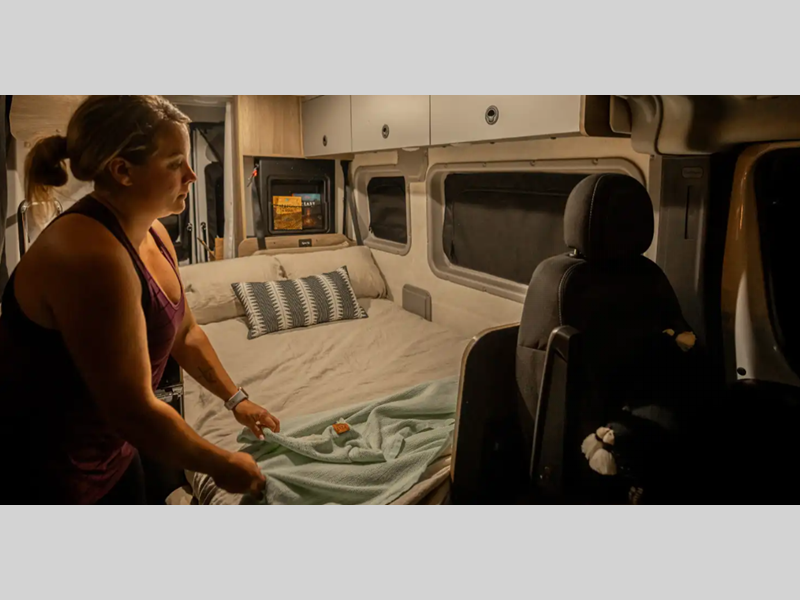 The flexible interiors come with plenty of storage, a fully equipped kitchen to keep your bellies full, and versatile sleeping arrangements. You can go all year around with the extended-season camping capabilities, like the Truma VarioHeat in model 36A and the Truma Combi Eco heating system in model 36B. Outside, you'll find a rear and side screen door to let fresh air in and keep bugs out, a fold-down exterior table, and more convenient features to van life easier than ever.